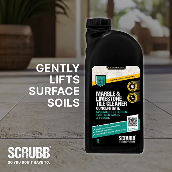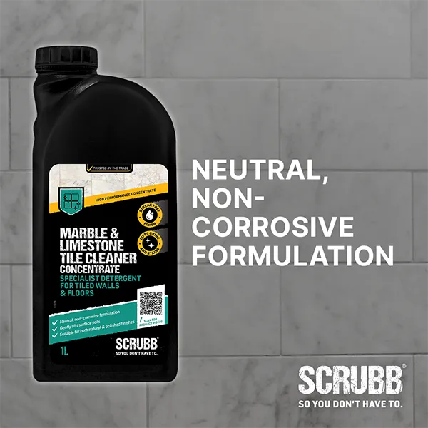 SCRUBB Marble & Limestone Tile Cleaner Concentrate is expertly formulated for the routine care of marble and limestone surfaces, from floors and walls to countertops and fireplace surrounds. Its gentle yet effective action helps maintain the natural finish without dulling or damage. Suitable for everyday use to keep stone surfaces looking their best.