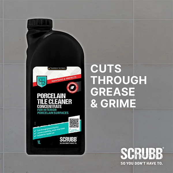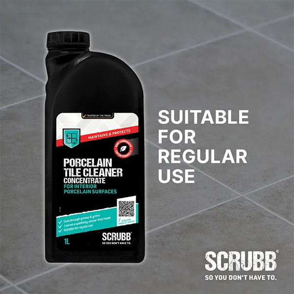 SCRUBB Porcelain Tile Cleaner Concentrate is specially developed for regular care of interior porcelain surfaces, helping to achieve a perfect clean with no smears or residue. Suitable for use on both polished and matte porcelain tiles.