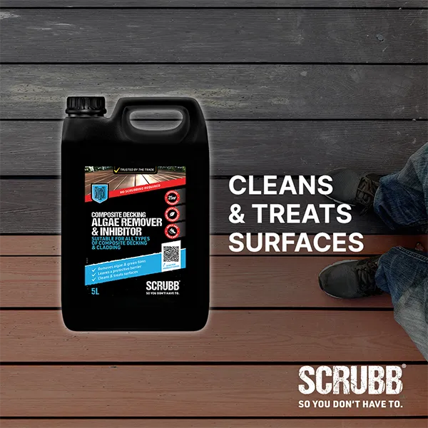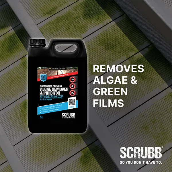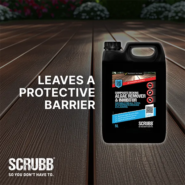 Advanced formulation specially developed for the removal of algae, moulds, lichen and green films from composite decking and cladding. Acts fast and effectively with no need for scrubbing, protecting surfaces from corrosion and damage.